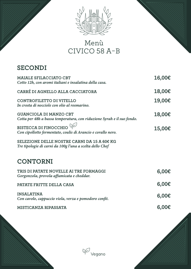 Welcome to Civico58 A-B, a charming café nestled at Via Milano, 58 in the heart of Roma, Italy. This delightful spot boasts a menu that seamlessly blends quality and comfort, featuring standout dishes like the exquisite Rib Eye Sashi Finnish. Known for its exceptional marbling and herbaceous notes, this 250-gram cut promises a burst of flavor with every bite. Complement it with crisp fried potatoes, a fresh house salad, or seasonal vegetables for a well-rounded meal.